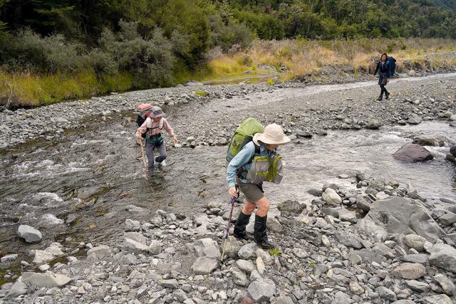 The carrot that dangled was the promise of an ‘easy 3–4 day riverside ramble ... a good leg-stretcher.’ By the time Waitangi Weekend arrived, our party had dwindled to just five intrepid trampers – the perfect number of people to shoehorn into Ken Ridley’s ancient Subaru Legacy. He and his partner Yumi drove it to the small settlement of Hawarden where we met with Kath who was touring in her campervan. Our ages ranged from mid-50s to early 80s.