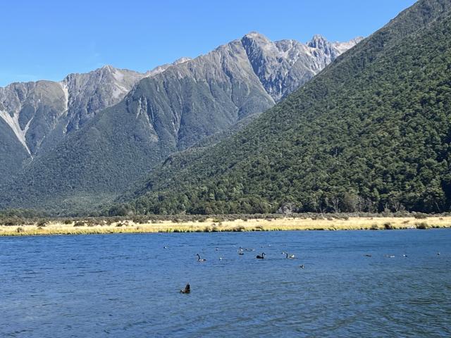 The weather was beautiful and good for walking but the last bit where we walked in the meadows was warm with the sun beating on us. We had enough time at the Lakehead Hut to go to the shaded glade where people camp and make fires in big fire-rings and rest up before making our way to the jetty 15 minutes away (ah, the hardship!). On the jetty we had a bit of a wait for the taxi that was running late so we lolled around watching the swans, ducks, and sailboats (more hardship!).